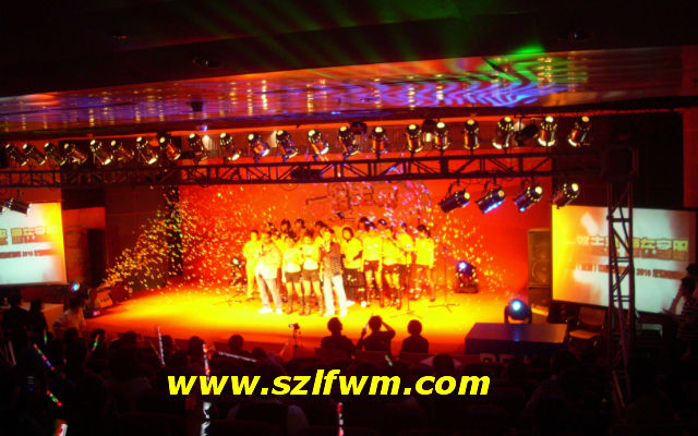 當(dāng)最后一個臨時節(jié)目結(jié)束之際,燈光終于亮起來了,全場響起一片熱烈的掌聲。于是,晚會繼續(xù)按照原來的軌道運(yùn)行。我在道具組工作,真是分秒必爭啊,上一個節(jié)目一結(jié)束,燈光一暗下來,工作人員就馬上沖上舞臺撤道具并搬上去下一個節(jié)目所需的道具,不能有一絲差錯,搬放時間要快,擺放位置要對,我們的神經(jīng)都繃緊了。其他區(qū)域也有工作人員,大家分工合作,緊守崗位,讓晚會能夠有條不紊地進(jìn)行。